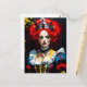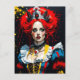 Alice als Fantasie-KI der Roten Königin erzeugte Kunst in den Farben Rot, Blau, Gelb, Schwarz und Weiß mit Spritzern.