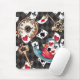 Alice an Wonderland Mousepad with Golden Clock and Key and Cards