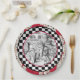 Set von acht 9" PapierTeller mit einem Vintagen Alice im Wunderlandbild von Alice in der Königin der Herzen' Hof in einem Schwarzweiss-Schachbrettrahmen auf einem Hintergrund der Spielkarten auf Rot. See zusammenpassende Plastik- und Papier-Untersetzer. Sehen Sie die gesamte Märchenland-Plattensammlung im FOOD/BEV | Geschirrabschnitt.