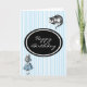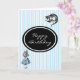 Alice und die Cheshire-Katze von der klassischen Alicen im Wunderland das Buch der Kinder erscheinen auf einer süßen blauen und weißen gestreiften Karte mit einem Mittelmedaillon mit Wörter alles Gute zum Geburtstag. Das Innere ist für Ihre eigene persönliche Mitteilung leer.