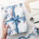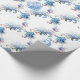 Die Cheshire-Katze, Alice und das weiße Kaninchen im Blau von der klassischen Alicen im Wunderland das Buch der Kinder erscheinen mit einem schönen Muster von Wreaths der blauen Vergissmeinnichte auf einem weißen Hintergrund auf dieser reizenden Geschenkverpackung. Zusammenpassende Einzelteile sind in meinem Zazzle Speicher verfügbar.