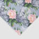 Die Mad Hatter, Cheshire Cat, Girl Alice und White Rabbit aus der klassischen Alice im Wunderland erscheinen in Weiß versteckt zwischen den Blätter und Blume von wunderschönen duskyblauen, rosa und hellblauen Vintagen Rose, auf diesem wunderschönen whimsical literary themed paper für Geschenkverpackung oder Crafting und Dekodierung.