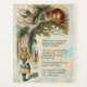 Alice im Wunderland und die Cheshire Cat - Die klassische Elke und Cheshire lächelnde Katze, die auf einem Ast sitzt und vom Baum herunterschaut, stammt aus dem Buch der 1800er Jahre über Alice und ihre Abenteuer im magischen Wunderland. Enthält Auszug aus dem Originalbuch "Aber ich woll nicht, unter verrückten Leuten zu gehen"