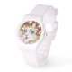 Ein einzigartiges und farbiges Bild von Alice im Wunderland Women's Sporty White Silicon Watch.