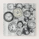 Bei diesem Bild geht es um Viktorianische Taschenuhren, ein klassisches Schwarzweiß-Stift- und Tintenmotiv, wobei der Hintergrund eine klassische Weiße Kaninchen-Passage der Alice im Wunderland im Buch Lewis Carroll Alice im Wunderland zitiert.