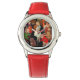 Kinderuhr aus Edelstahl mit rotem Lederarmband