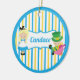 Niedliche Alice im Wunderland Weihnachtsschmuck Geschenk. Die kleine Elke in ihrem blauen Kleid und der Mad Hatter sitzen auf hübschen, blau-gelben Streifen. Passen Sie diesen skurrilen Bücherwurm mit Ihrem eigenen Text für Ihren Lieblingsbibliothekar an.