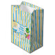 Niedliche Alice im Wunderland Geburtstagsgeschenk-Tasche mit einem lustigen Kinderbuch Thema. Kleine Mädchen Alice in ihrem blauen Kleid und die Mad Hatter sitzen auf einem hübschen blau gelben gestreiften Design. Passen Sie dieses skurrile Party mit Ihrem eigenen Text an und feiern Sie Ihr Kind an seinem besonderen Tag.