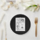 Dies ist Teil der Vintagen Alice im Wunderland Tea Party Theme Collection. Alice wird mit der Cheshire-Katze auf einer Papierplatte mit einem Schwarz-Weiß-Thema vorgestellt.