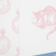 Eine tolle Alice im Wunderland, die mit Alice, dem Kinderbuch, dem Weißen Kaninchen, der Cheshire Cat und Mad Hatter gestaltet wurde, sowie Vintage Teeköpfe und Taschenuhren, in Rosa, Blau und Weiß, machen ein hübsches und lustiges literarisches Thema für ein Kinderzimmer- oder Kinderzimmer.