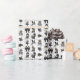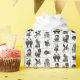 Die Muster beinhalten Zeichen der Alice im Wunderland in Schwarz und Gold auf weißem Hintergrund.
