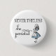 Alice, das Mädchen aus der klassischen Kinderbuch-Alice im Wunderland, mit ihren Armen überquert und trägt ihr ikonisches blaues Kleid, erscheint mit den Worten "NEVERTHELESS, sie beharrte" auf dieser großartigen Aussage, die literarische Themenknopf.