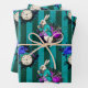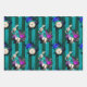Dieses feine, lebendige, inspirierte Design der Alice im Wunderland hat das weiße Kaninchen, Uhren und Rose auf einem aquamarinen und dunkelgrünen vertikalen Streifen Hintergrund. Ideal für Entpackung, Handwerk oder Geschenkverpackung.