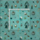 Zu den Mustern zählen Alicen im Wunderland und andere Fantasy-Elemente auf aquamarinem und goldenem Herzen Hintergrund.