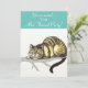Dieses Alice-Party lädt die berühmte Cheshire-Katze mit Grinsen ein. Ideal für Kinder oder Erwachsene mit einem Alice-Partys. Vollständig anpassbar für Sie, um Ihren eigenen Text hinzuzufügen, wenn Sie möchten. Die Cheshire-Katze sitzt auf einem Ast, und ihr Schwanz hängt ab.