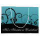 Große, glänzende Geschenktasche mit beidseitigem Bild von lustigen schwarzen Weinreben auf ombre blue und "Alice’s Adventure in Wonderland" in weißer Schrift unten. Siehe dazu passende Geschenktasche, Konfetti, Gefallen-Tasche, Gefälligkeitskiste, viereckige Gunst-Tag und Packpapier. Sehen Sie sich die gesamte Wonderland-Geschenktüte-Sammlung in den SPEZIELLEN TOUCHS an. | Abschnitt Gastgeschenke.