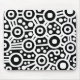 Ein attraktives und originelles abstraktes Design aus Kreisen und runden Flecken, einige Kreise haben Mittelpunkte, einige Kreise innerhalb von Kreisen. Alle Hauptkreise sind mit einem Netz von Linien verbunden, wie Kabel, Fäden oder Kabel. Erstellen einer Komposition, die die innere Funktionsweise eines Mechanismus sein könnte, eine Art Diagramm oder eine elektrische Schaltung.