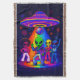 The party’s not over—it’s just getting started in this intergalactic disco scene! A UFO hovers above with a glittering disco ball dangling beneath it, casting vibrant neon lights over a dance floor packed with groovy aliens dressed in retro disco gear. This wild, colorful design is a mashup of vintage style, sci-fi fun, and dance-floor joy. Whether you're into space-age humor, love aliens, or just want something fantastically funky for your living room, this blanket is pure fun. It makes a stellar gift for party lovers, cosmic enthusiasts, and anyone who wants to dance with the stars—literally.