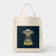 Funny Kuh Alien Entführung Vektor Illustration clipart auf Icon, anpassbare Hintergrundfarbe und Text.