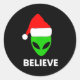 Alien Green Face Christmas Santa Hat Believe Runder Aufkleber