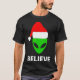 Alien Green Face Christmas Santa Hat Believe T-Shirt