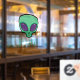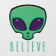 Cartoon Alien Kopfbild mit großen dunklen Augen mit "Glaube" Schrift. Tags: Alien, Raum, Mars, Cartoon, Spaß, Science Fiction, Vektor, sci fi, glaube