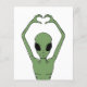 Vivid green alien forming a heart with arched arms against black, blending sci-fi whimsy with playful charm. Bold contrast, perfect for space fans and quirky casual outfits.