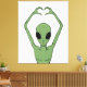 Vivid green alien forming a heart with arched arms against black, blending sci-fi whimsy with playful charm. Bold contrast, perfect for space fans and quirky casual outfits.
