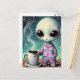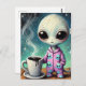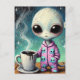 Eine lustige Alien in Pjs mit einem extra dunklen Morgenkaffee