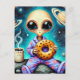 Alien in PJs mit Kaffee und Bagel Postkarte