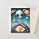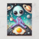 Eine lustige Alien in Pjs mit einem Morgenkaffee und einem gebratenen Ei auf einem Felsen