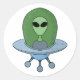 Alien in seinem kleinen Raumschiff Runder Aufkleber