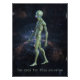 Freuen Sie sich auf ein Plakat zum Thema Freiraum, mit grafischen Bildern einer grünen Alien mit farbenfroher Galaxie-Sonnenbrille, vor einem abstrakten Solo-System-Look Hintergrund. Benutzerdefinierter Text liest zu cool für dieses Universum, und kann personalisiert sein, zu lesen, was Sie gewollt haben.