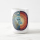 A powerful and symbolic artwork showing an alien curled inside the glowing core of planet Earth like a child in the womb. The surrounding continents and swirling cosmic energy represent birth, connection, and the fusion of life between worlds. A deep, imaginative piece that unites the mysteries of creation and the cosmos.