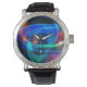 Alien dringt in den blauen Planeten ein... Farbenfrohe Lichter über dem Rot/Rosa Meer auf dieser Uhr