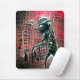 Eine gigantische, metallische Alien, die in eine Großstadt eindringt. Wombo Dream AI und Künstlerkooperation.