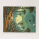 Alien Dschungel mit einer geheimnisvollen Silhouette in einem Retro-Sci-Fi-Cover Art Stil.