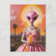 Alien Lady mit Orangensaft in der Wüste Postkarte