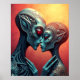 A passionate sci-fi poster print featuring two alien lovers in an intimate embrace. Perfect for modern interiors, romantic souls, and fans of surreal space-themed art..