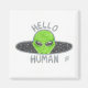 Eine grüne Alien, die aus einem schwarzen Loch herausspringt.