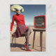 Alien mit einem Funkgerät in der Wüste Postkarte