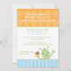 Diese 12x18 Geburtstagsfeier Einladung hat einen orangefarbenen Punkt mit einem blau gestreiften Boden. Eine niedliche Alien windet mit einer Hand und hält einen Kuchen mit der anderen Hand. Sie können Ihre Party-Informationen ganz einfach anpassen. Cocoa Studio com