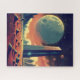 Enigmatischer Alien Monolith in Retro-Sci-Fi Cover Art Stil.