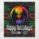 Alien "Friede" gefärbte Krawatte für die Verpflegung und die Weinetiketten! Sie können den Gruß "personalisieren", einen Namen hinzufügen oder ihn so behalten wie er ist. Alien mit Friedensschild, gefärbte Krawatte rund Rahmen, Jahr auf der Seite, gemusterter Hintergrund und coole Alien Typografie.