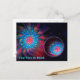 Ein sehr farbiges, wirbelndes, Fraktal-Bild erscheint zweimal. Einst überlagert auf einem sternförmigen Weltraumhintergrund; ein zweites Mal auf einer kleinen Kugel, umgeben von einer leuchtenden Aura. Vielleicht eine Sonde, die von einem Mutterschiff gestartet wurde, oder ein kosmisches Ei. Fügen Sie Ihren eigenen Text hinzu.