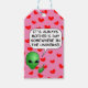 Individuelle Geschenkanhänger. Eine Cartoon Alien leitet Sprichwort, das immer der Tag der Mutter ist irgendwo im Universum. Rote Herzen und rosa Hintergrundversion. Geschenkidee für Mütter, die Liebe Außerirdischen und Sci-fi.