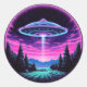 Alien Spaceship Retro Futuristic Runder Aufkleber