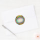 Dieses runde Aufkleber-Blatt weist ein buntes Muster von hellen psychedelischen Farben auf, das eine zentrale Eizellstruktur umgibt. Es ähnelt einer Fantasie eines Raumschiffs der Alien, das bereit ist, ein Erdling abzuwehren.