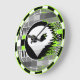 AUFMERKSAMKEIT! Coole Retro-TV-Testkarte inspiriertes Design mit einem stilisierten Alien-Gesicht und extra-terrestrischem Eingriff in Schwarz, Weiß, Grau und Grün. Ein individuell anpassbares Design für Sie, um mit Ihrem eigenen Text, Bildern und Ideen zu personalisieren. Ein originelles digitales Kunstbild, das von Jess Perry erstellt wurde.