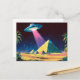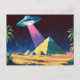 Ein surreales und fantasievolles Design, das eine Alien UFO über den ägyptischen Pyramiden zeigt und antikes Geheimnis mit Science-Fiction-Intrigen verbindet.